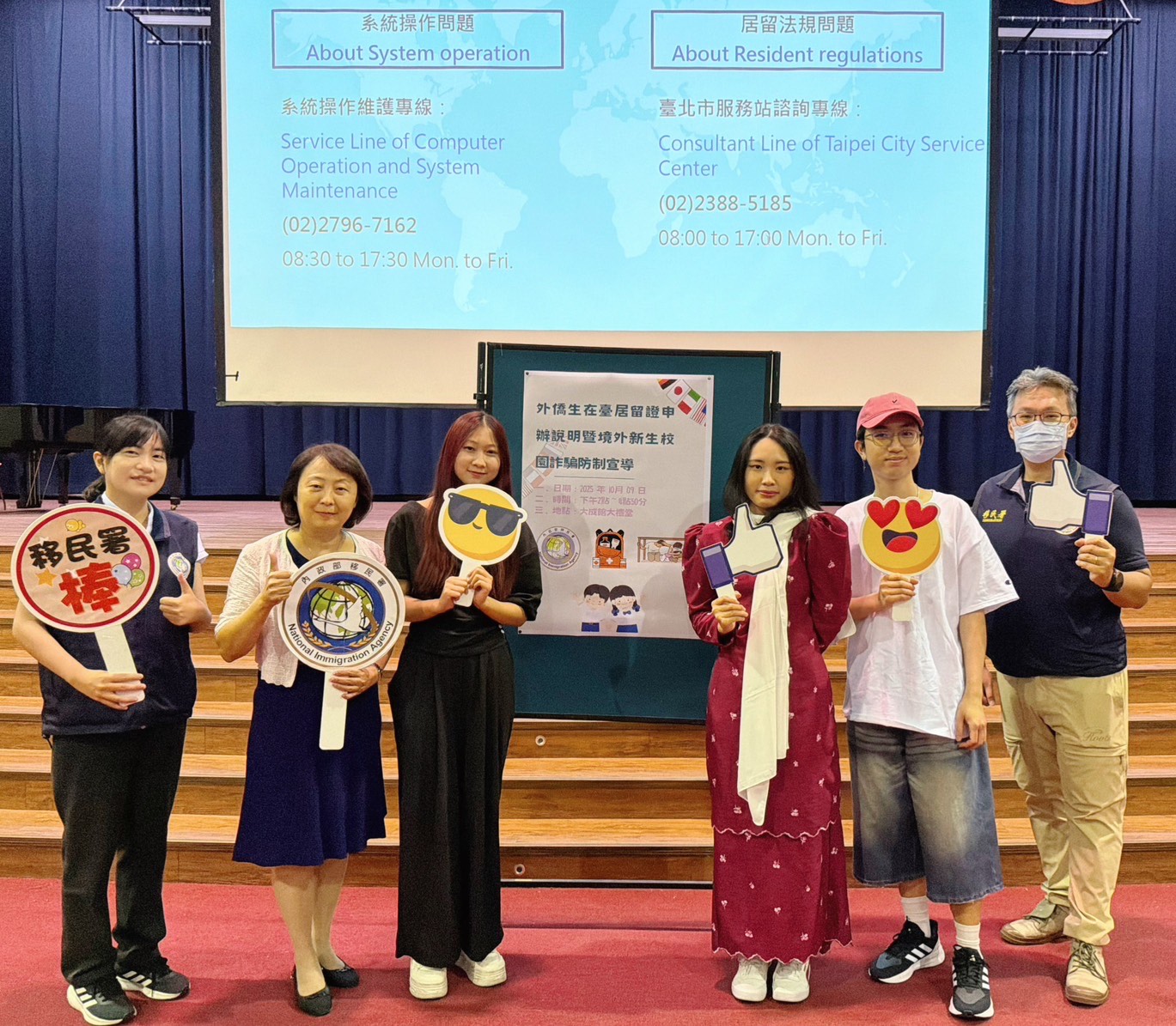 1141014-1移民署臺北市服務站受邀出席臺北城市科技大學之外僑生在臺居留證申辦說明暨境外新生校園詐騙防治宣導。