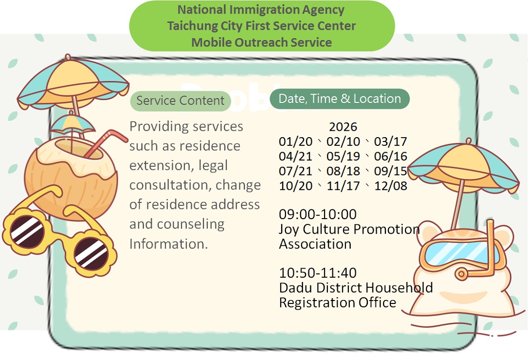 115年度移民署臺中市第一服務站行動服務列車辦理時間及地點公告