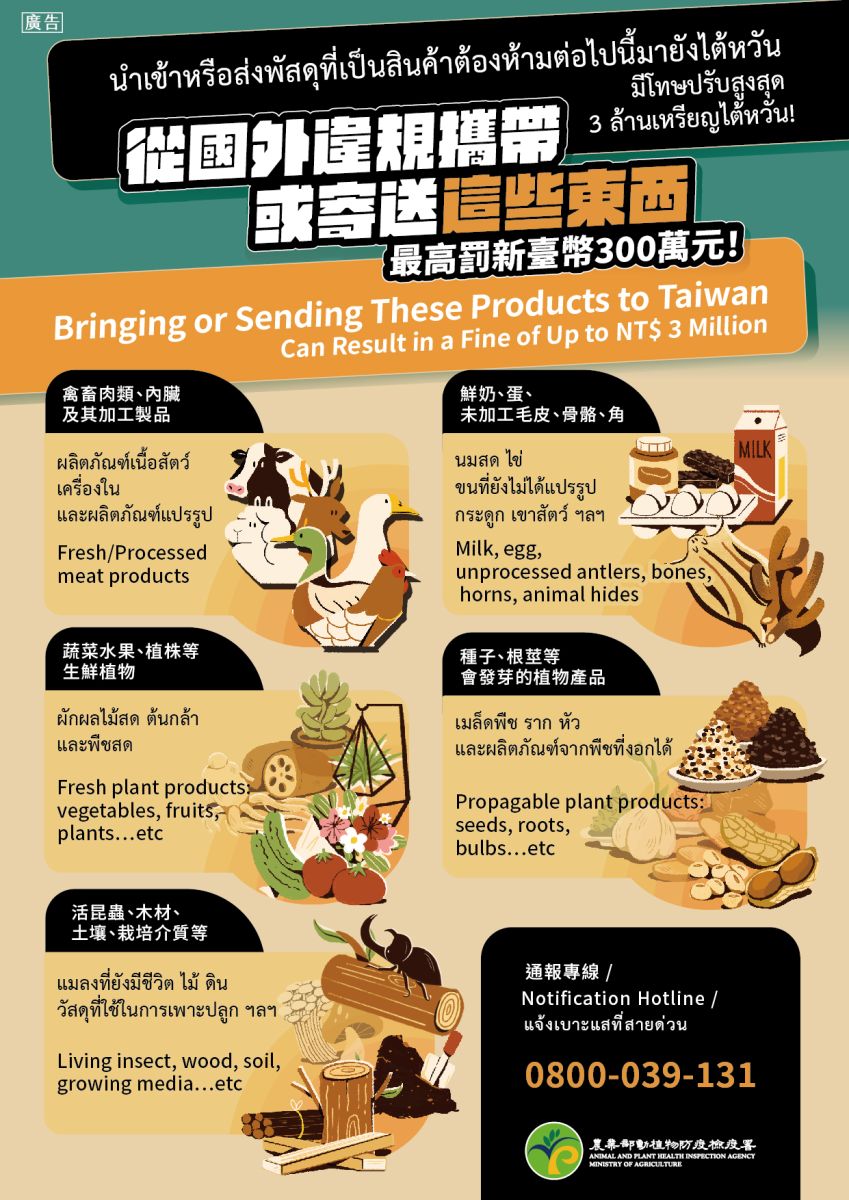 防範非洲豬瘟,請勿攜帶或寄送含有豬肉製品回國,讓我們一起保護臺灣豬!