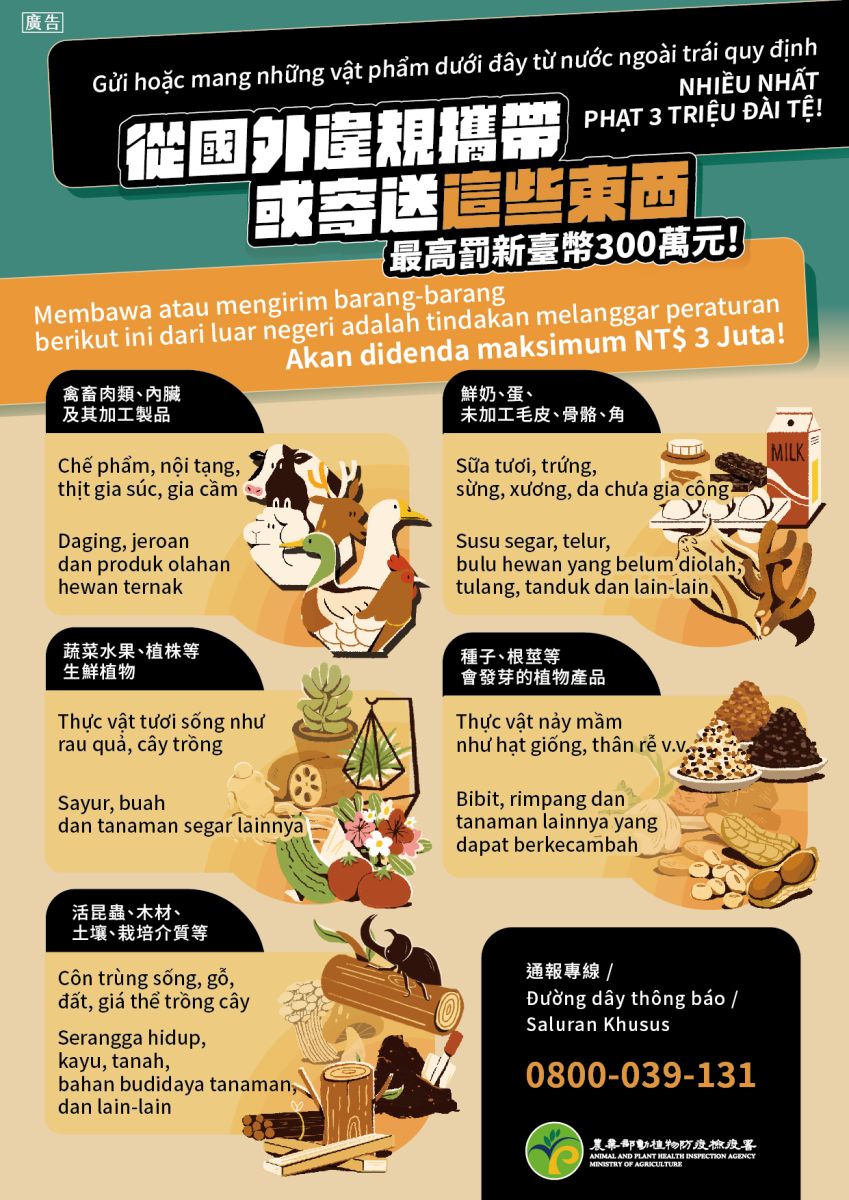 有關非洲豬瘟訊息及「常見入境旅客攜帶動植物或其產品檢疫規定參考表」可至行政院農業委員會動植物防疫檢疫局非洲豬瘟資訊專區下載使用。